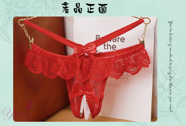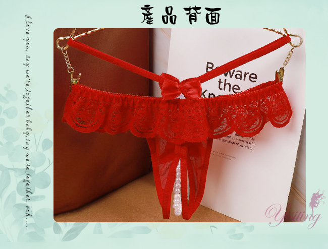 浪漫情人!輕膚柔紗拼接蕾絲迷人珍珠開襠丁字褲﹝紅﹞