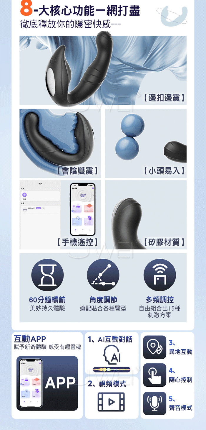 男人的快樂從捅對地方開始!精準捅到「G點」, 手機一控就噴發,爽到靈魂出竅 真人手指級扣動前列腺被瘋狂按壓!機械手指高頻按壓, 酸爽像有人用指尖瘋狂刮蹭你的“快樂開關” 從直腸直衝腦門的酥麻感新手3分鐘繳械投降! 全身過電般顫抖!會陰+蛋蛋+前列腺多核爆擊, 雙腿不自覺夾緊!腳趾蜷縮到抽筋!! 更多APP好玩功能,指尖滑動 自由觸控 隨心而動, AI語音互動聊燒視頻同步!! ■尺寸:大小詳如圖片標示 ■材質:矽膠+ABS ■供電:針孔充電 ■特色:3頻震動、3頻扣動、APP智控