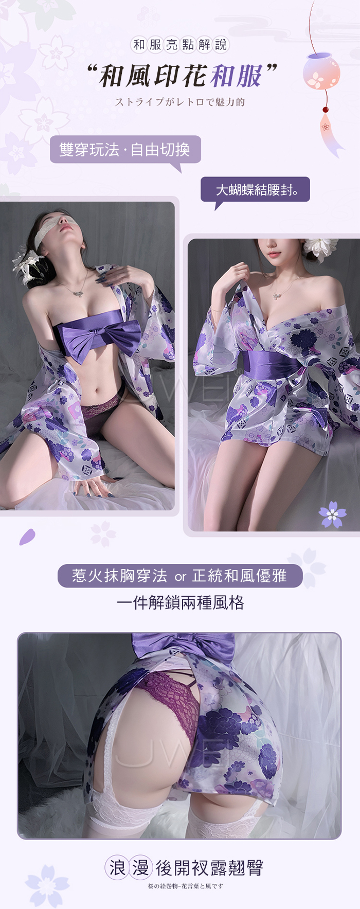 幽夜魅香.櫻花繪卷の詩意剪影雙穿玩法大蝴蝶結腰封和服【和服+腰封+T褲】