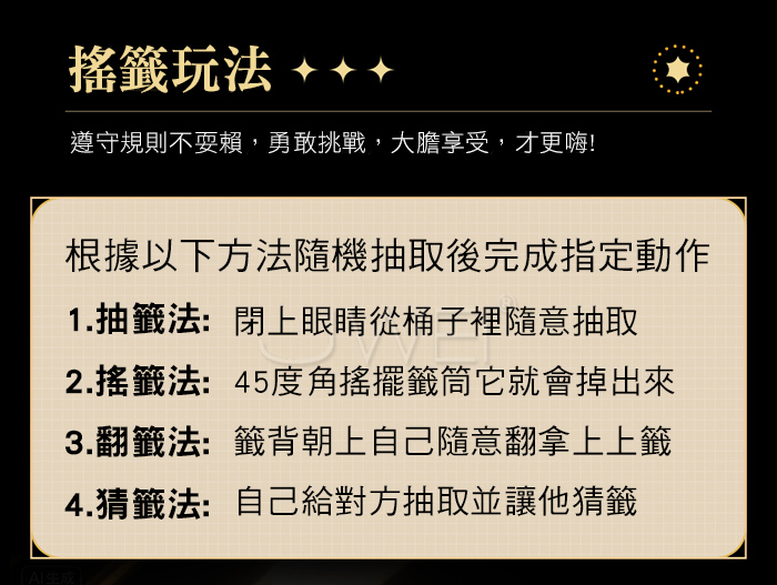 首頁>抽籤大冒險.前戲必備甜蜜任務互動調情竹製搖籤