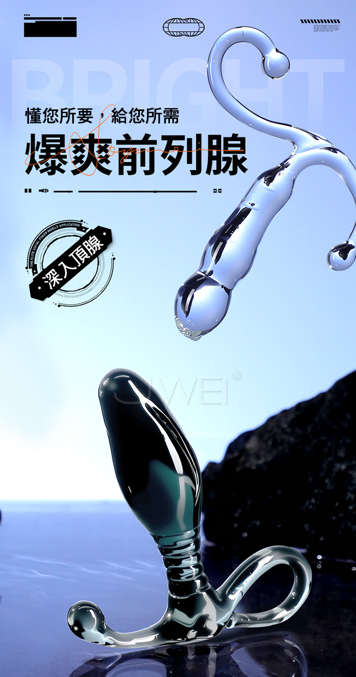 冰耀水晶.深入頂腺 水晶玻璃爆爽前列腺按摩器【黑耀】