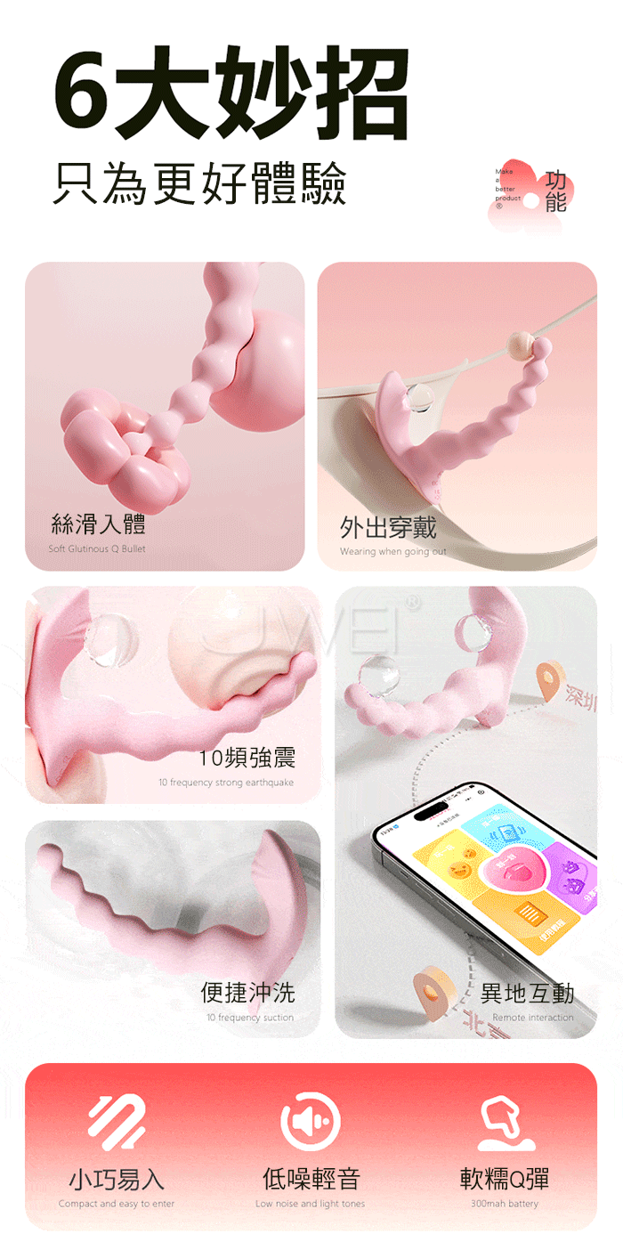 糯糯桃心.10頻穿透強震穿戴拉珠摩擦 新手爽玩APP異地遙控後庭按摩器