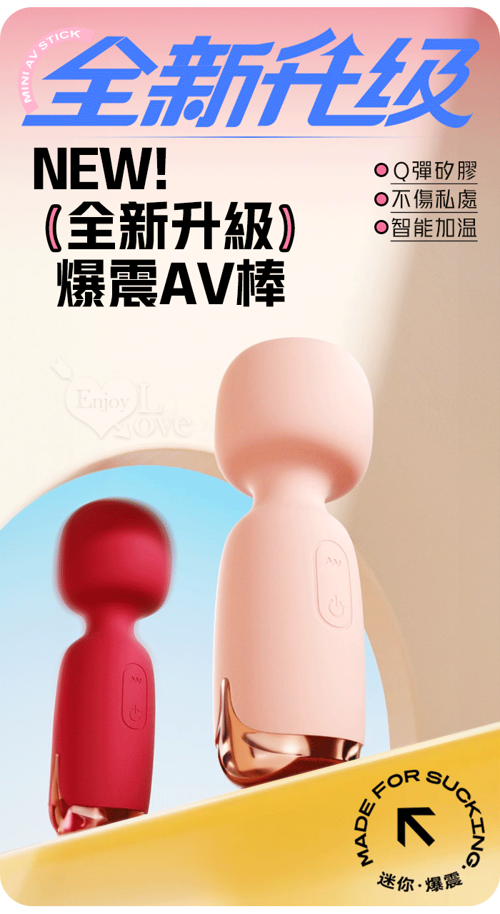 ROSELEX 勞樂斯 ‧ NEW全新升級~妙巢爆震AV棒 10調頻/智能加溫/小巧随身360度彎曲AV棒﹝櫻花粉﹞