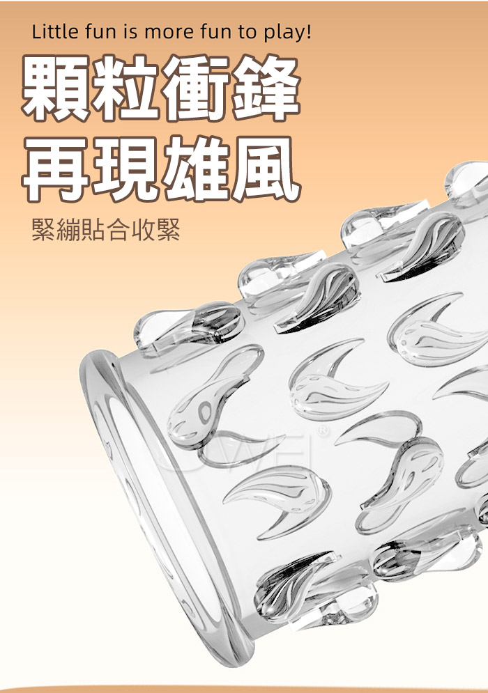 入珠纏綿露頭設計鎖精高潮環,鎖精、長時、加強,大顆粒柔軟材質,顆粒密集大狼牙套 直入深處波濤洶湧,漫漫長夜裡有她跟他一起是一種浪漫溫馨的時刻 這時候戴來一點不同,整個長夜餘韻悠長,帶她進入新的領域遨遊! ■材質:TPE ■功能:加粗變大,顆粒刺激,鎖精延時 ■內容:4入裝