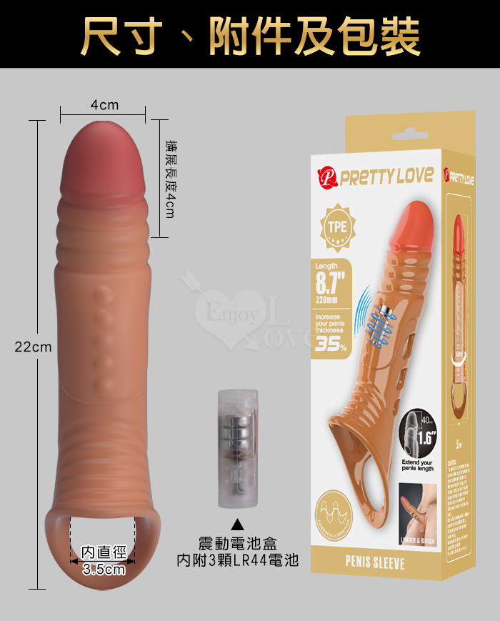派蒂菈 ‧ AMY 艾美 物理助力 8.7吋 仿真加長加粗連環螺紋顆粒鏤空內震動束環套﹝擴展男性尺寸﹞